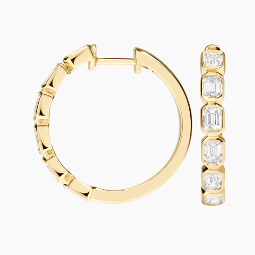 18K สีเหลืองทอง d vs1 2 กะรัตทั้งหมด Emerald Cut Lab Earring ห่วงห่วงเพชร